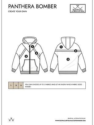 Introducing the oversized unisex bomber jacket -PANTHERA Bomber Jacket - a versatile piece that combines modern style with comfort and offers full customization. Choose from a variety of fabrics, as well as a wide range of patterns to create a unique jacket. The design features a slightly oversized hood, ribbed cuffs, and a ribbed hem for a perfect fit. You can also customize the lining, opting for polar fleece for winter or cotton, ideal for all seasons. This bomber jacket is the perfect choice for those who value design, functionality, and exclusivity.