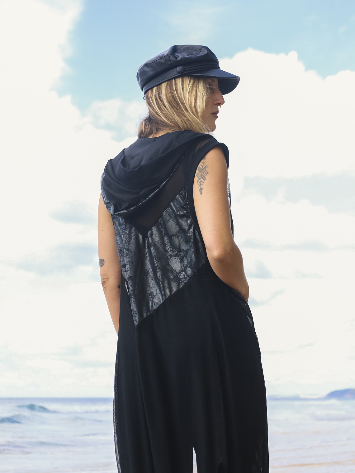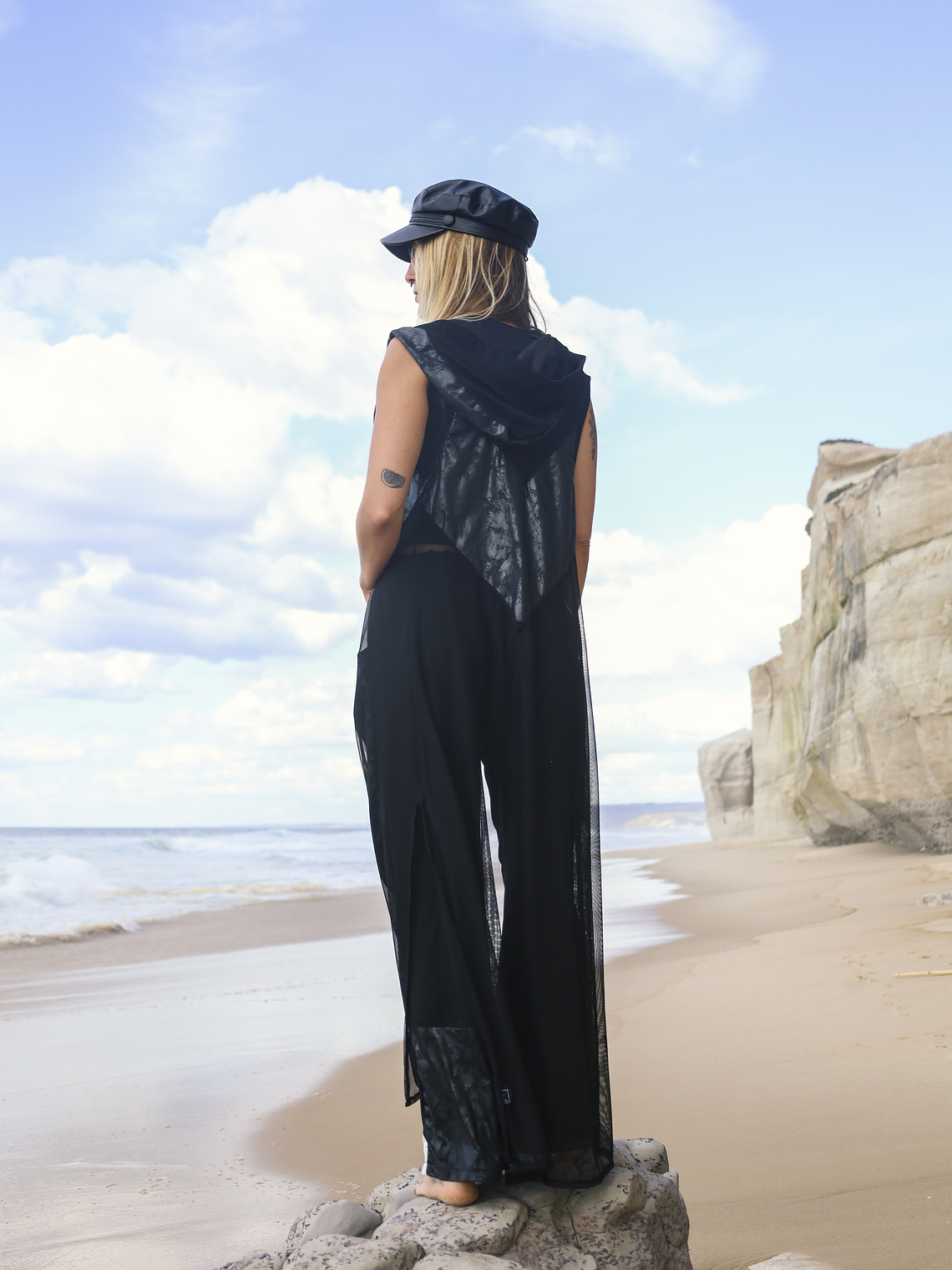 Crafted from a lightweight, sheer fabric, LUNA drapes over the body without weight, allowing your silhouette and personal styling to stand out. The long length, side openings, and structured hood add a futuristic, edgy aura—perfect for night looks, festivals, editorials, or impactful urban styling.